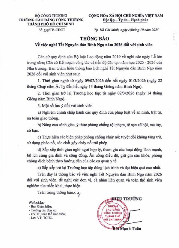 Lịch nghỉ Tết Nguyên Đán năm 2026
